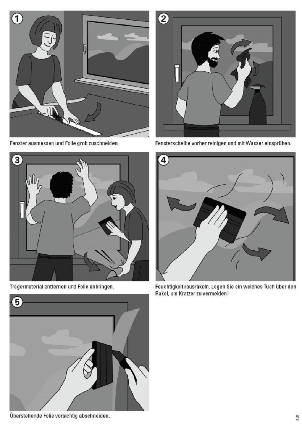 Permetezze be bő vízzel az ablaktáblát, és helyezze fel az ablakfóliát a kívánt helyre. A fólia alatti légbuborékokat és vízmaradványokat a legjobban műanyag kártyával távolíthatja el. Használhat hitelkártyát vagy törzsvásárlói kártyát is a szupermarketből. Egyszerűen csomagolja be a kártyát egy kis anyagba, és nyomja a fóliához. Ezután finoman nyomja le a vizet és a (a fólia alatt található) kis légbuborékokat a szélén túl. Törölje szárazra, és kész is!